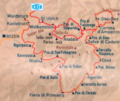 Karerpaß, Pso di Rolle, Ps. Duran, Pso di Giau, Pso. Cereda, Cortina de Ampezzo,